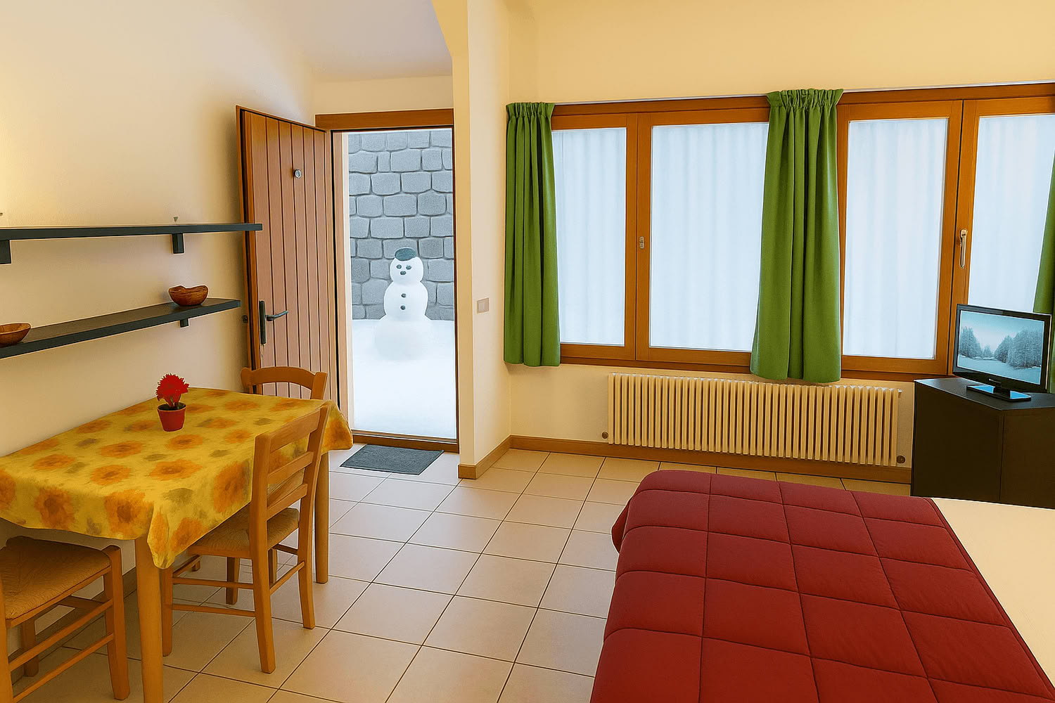 Dietro al residence passa la pista da sci (anche per principianti, a spazzaneve).