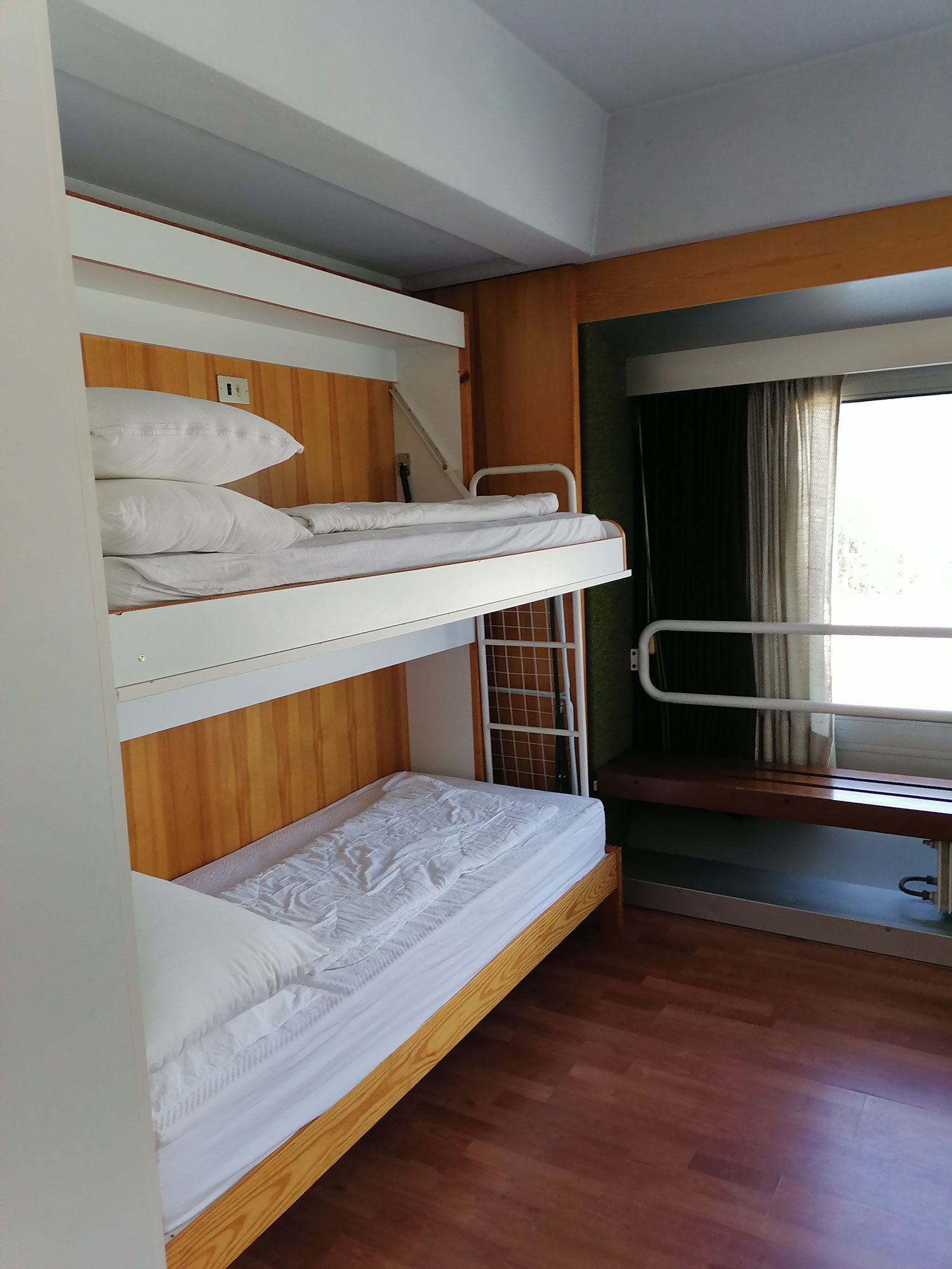 The rooms are separated by wooden panels and sliding doors, equipped kitchenette, color TV and bathroom with sink, toilet, bidet and shower.